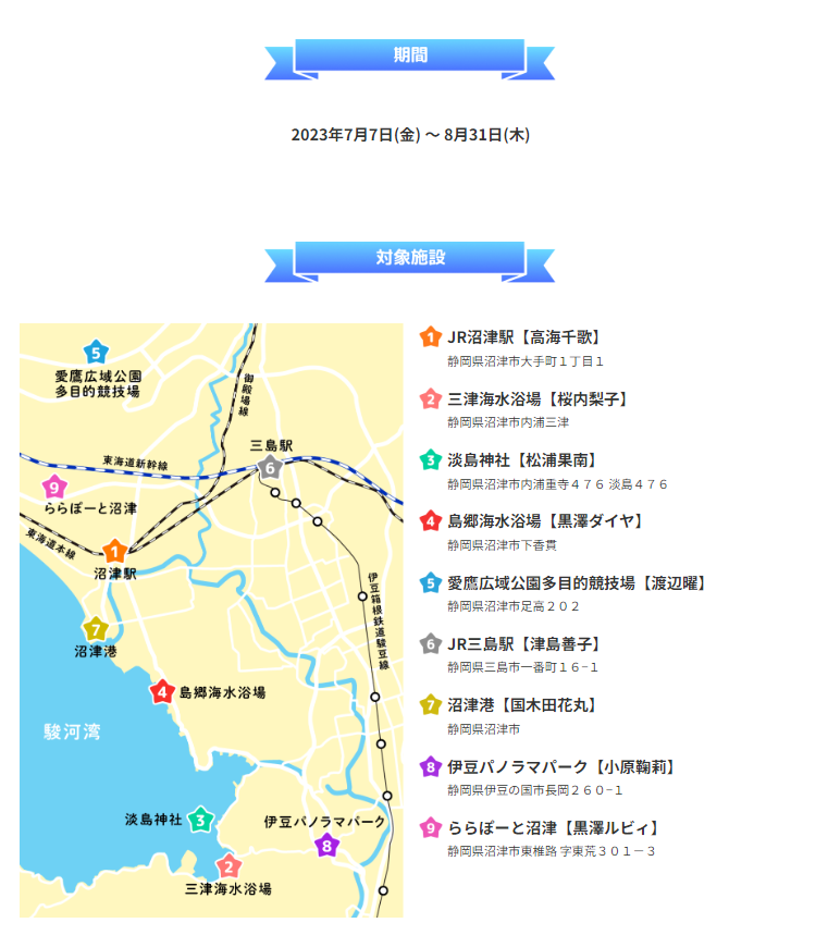 スポットは、JR三島駅・沼津駅ほか、全9箇所です。ぜひチェックしてください!